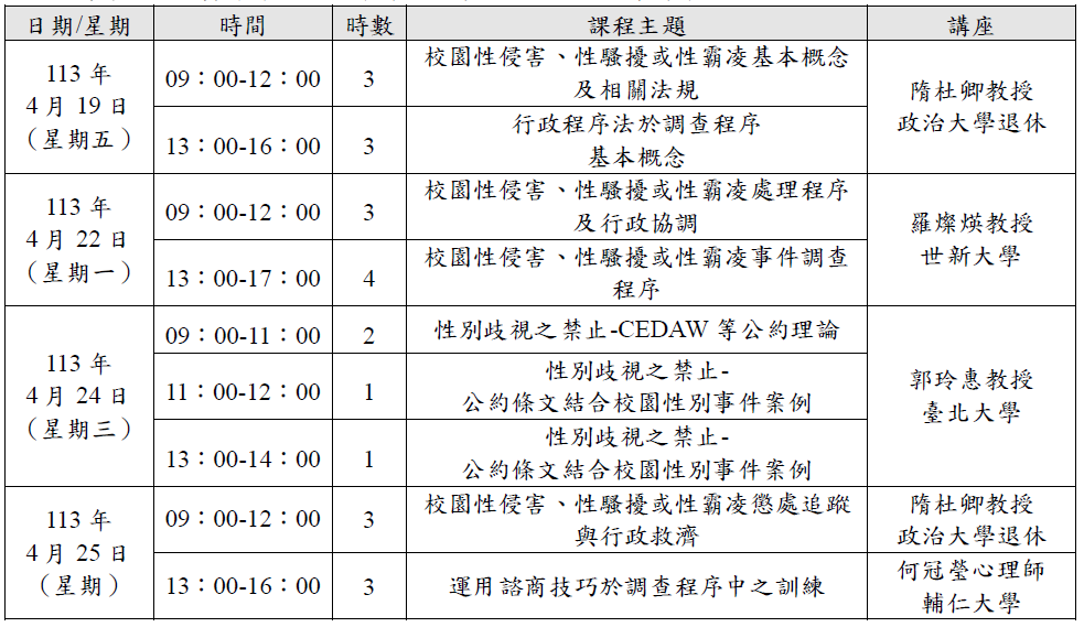 研習日期 113年4月19日(五)、22日(一)、24日 (三)、25日(四),共4天。