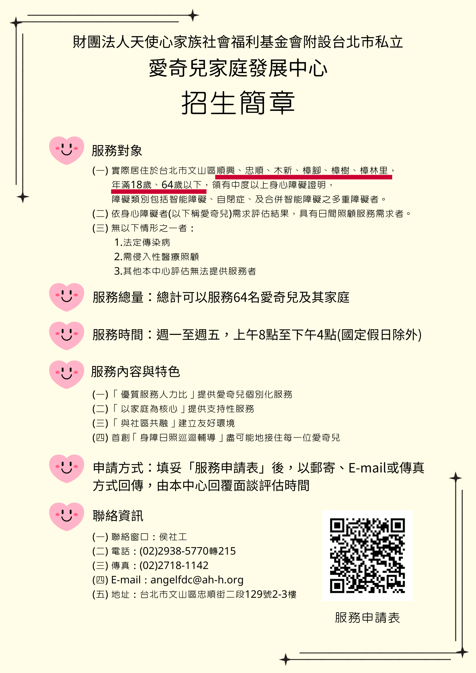 愛奇兒家庭照顧中心預計9月開始提供服務