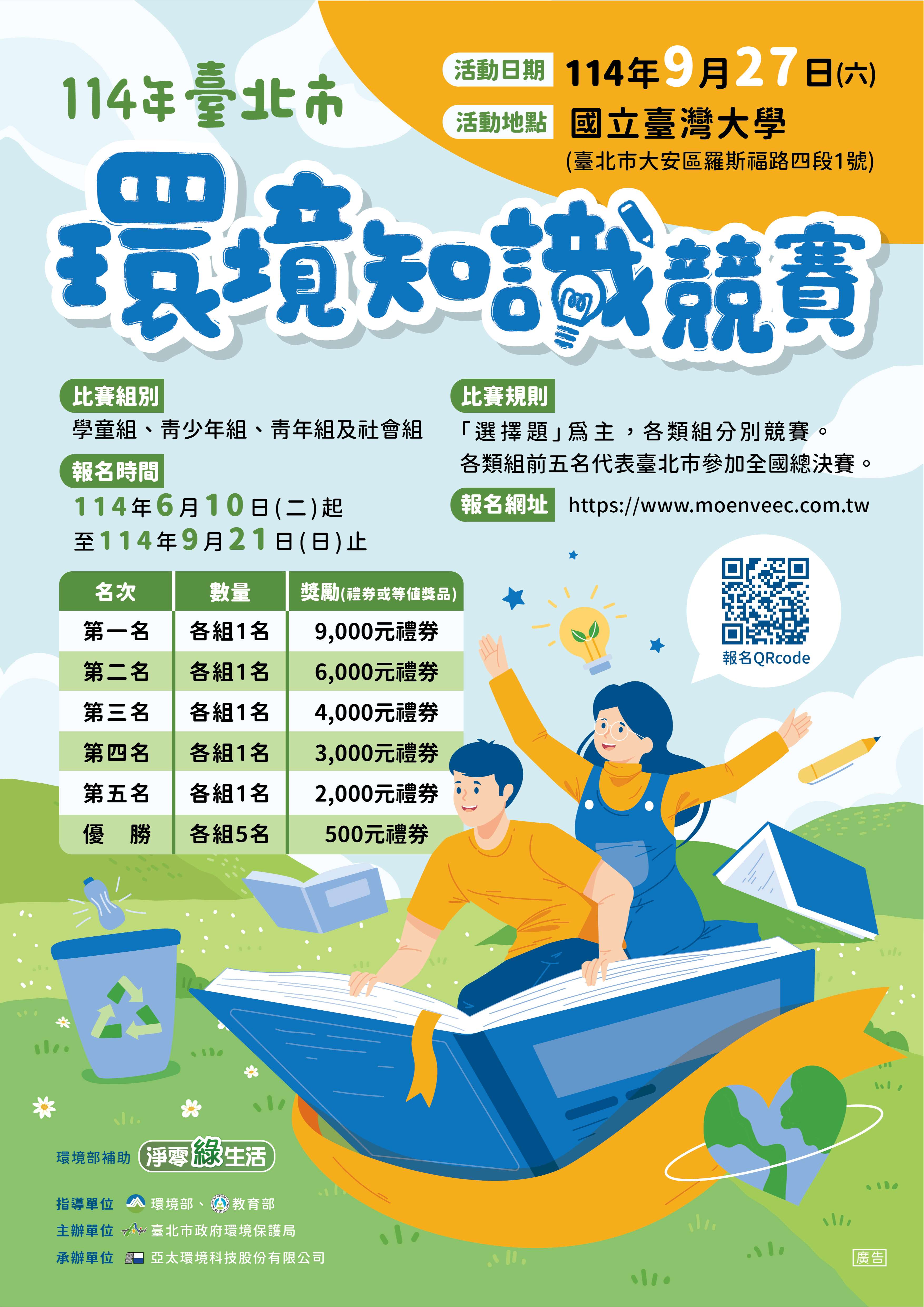 一、本市初賽報名日期為6月10日至114年9月21日止,一律採網路報名,有意參加者請至活動官網(https://www. moenveec.com.tw/)登記報名。