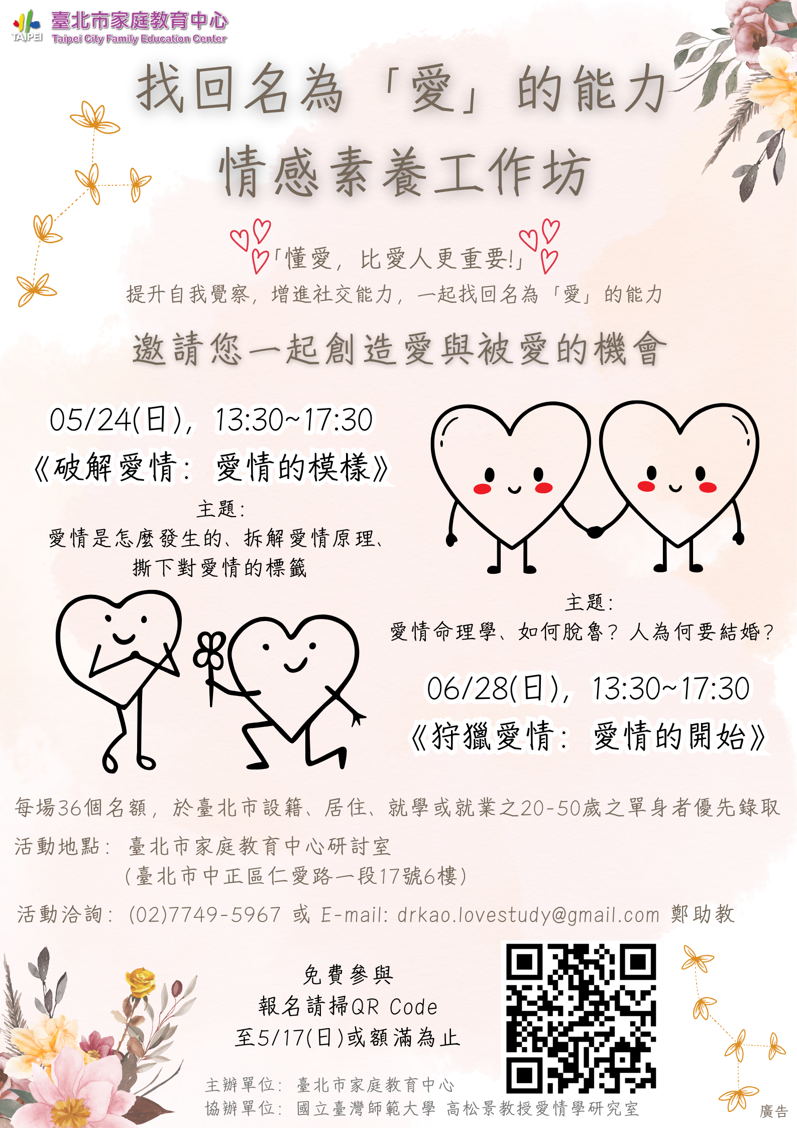 轉自本府家庭教育中心,如有需報名者,請洽人事室#714王小姐。